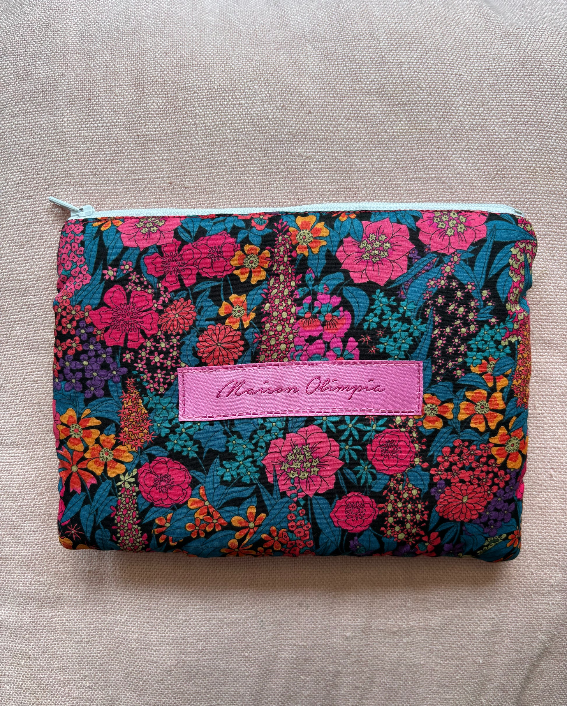 Elegante e funzionale, questa bustina piatta è realizzata in 100% cotone con una fantasia Liberty originale che dona un tocco raffinato e senza tempo. L'interno è morbidamente imbottito con cotone, ideale per proteggere piccoli oggetti come trucchi, accessori o articoli da viaggio. Perfetta da tenere in borsa o da regalare.