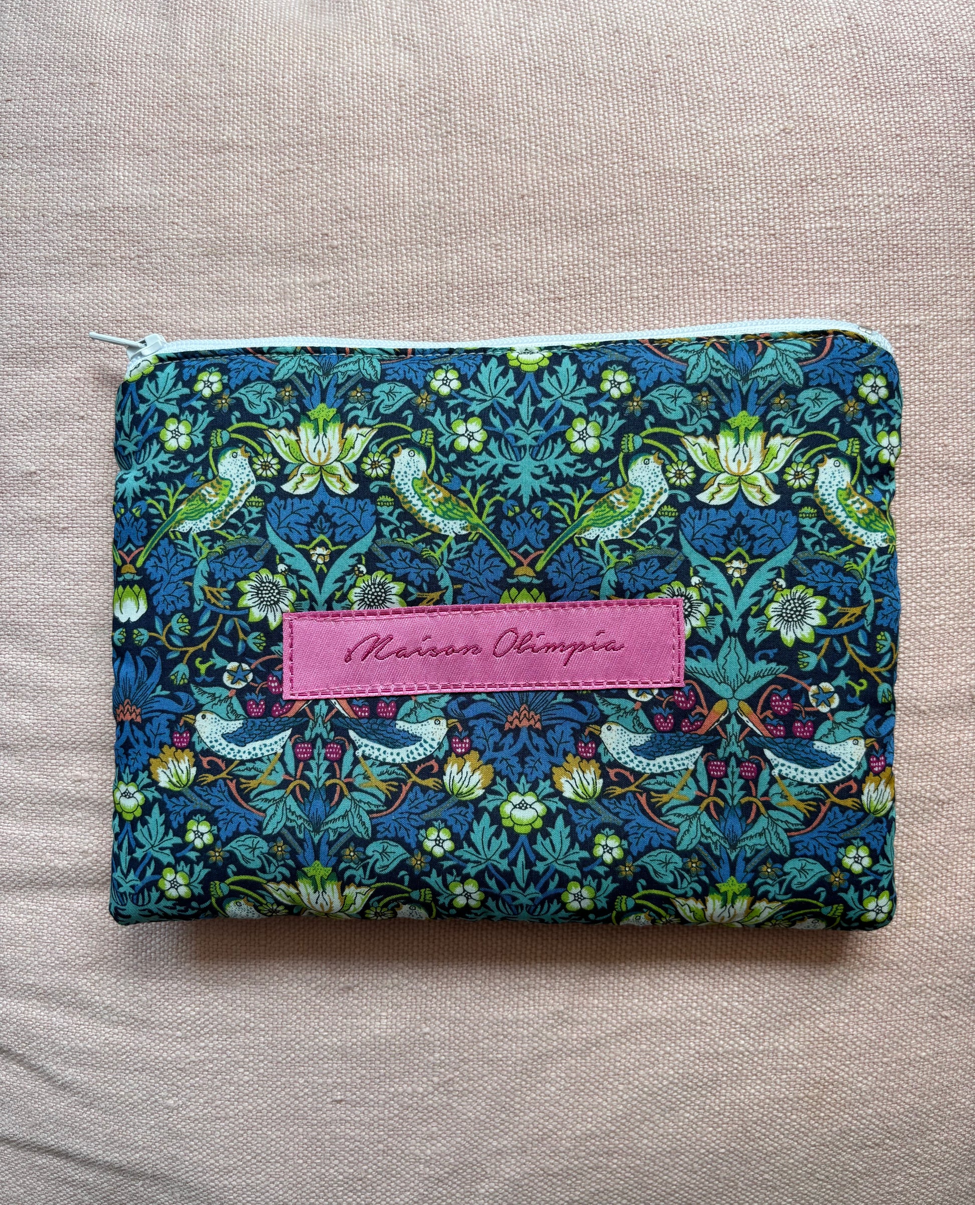 Elegante e funzionale, questa bustina piatta è realizzata in 100% cotone con una fantasia Liberty originale che dona un tocco raffinato e senza tempo. L'interno è morbidamente imbottito con cotone, ideale per proteggere piccoli oggetti come trucchi, accessori o articoli da viaggio. Perfetta da tenere in borsa o da regalare.