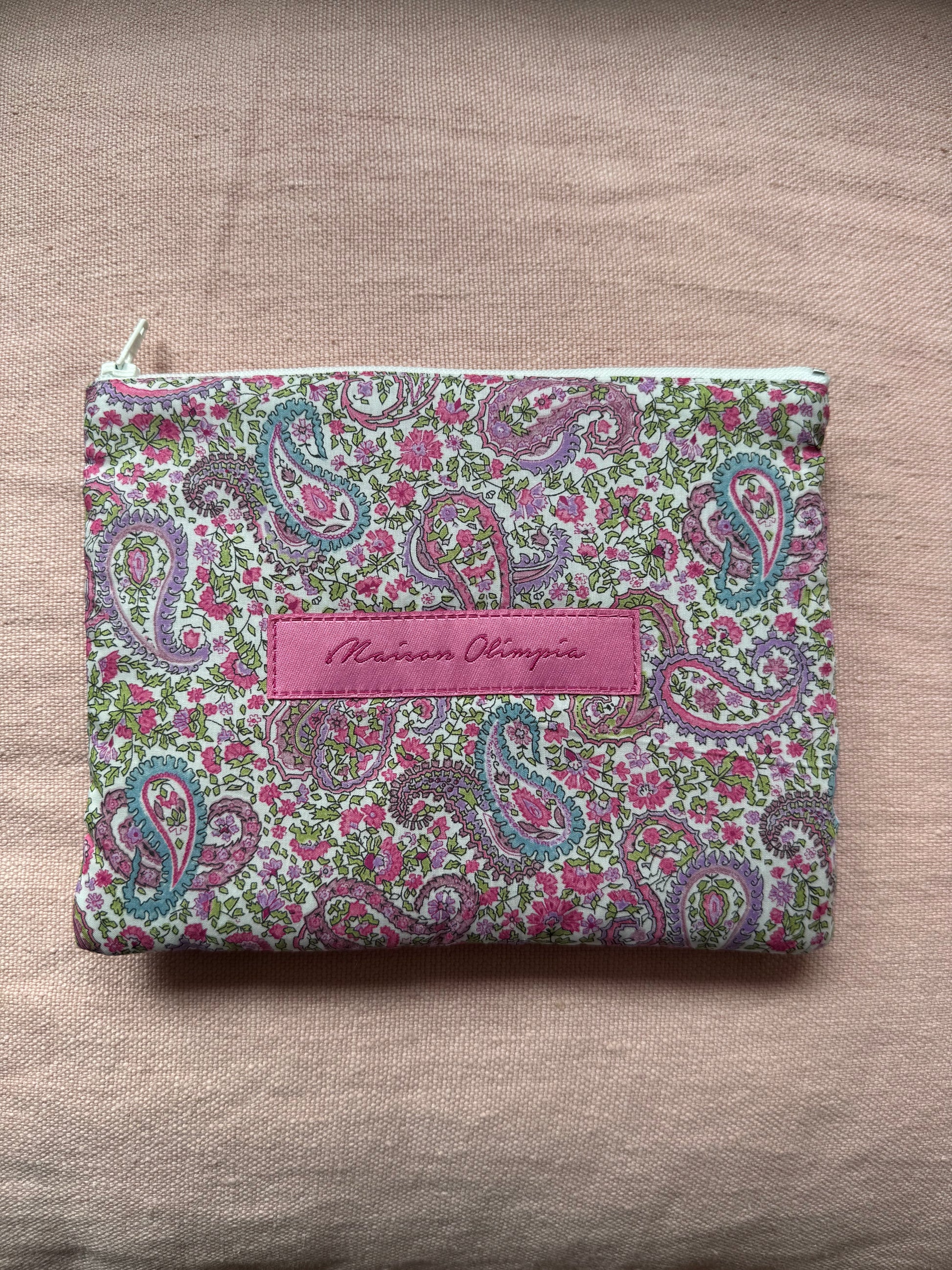 Elegante e funzionale, questa bustina piatta è realizzata in 100% cotone con una fantasia Liberty originale che dona un tocco raffinato e senza tempo. L'interno è morbidamente imbottito con cotone, ideale per proteggere piccoli oggetti come trucchi, accessori o articoli da viaggio. Perfetta da tenere in borsa o da regalare.