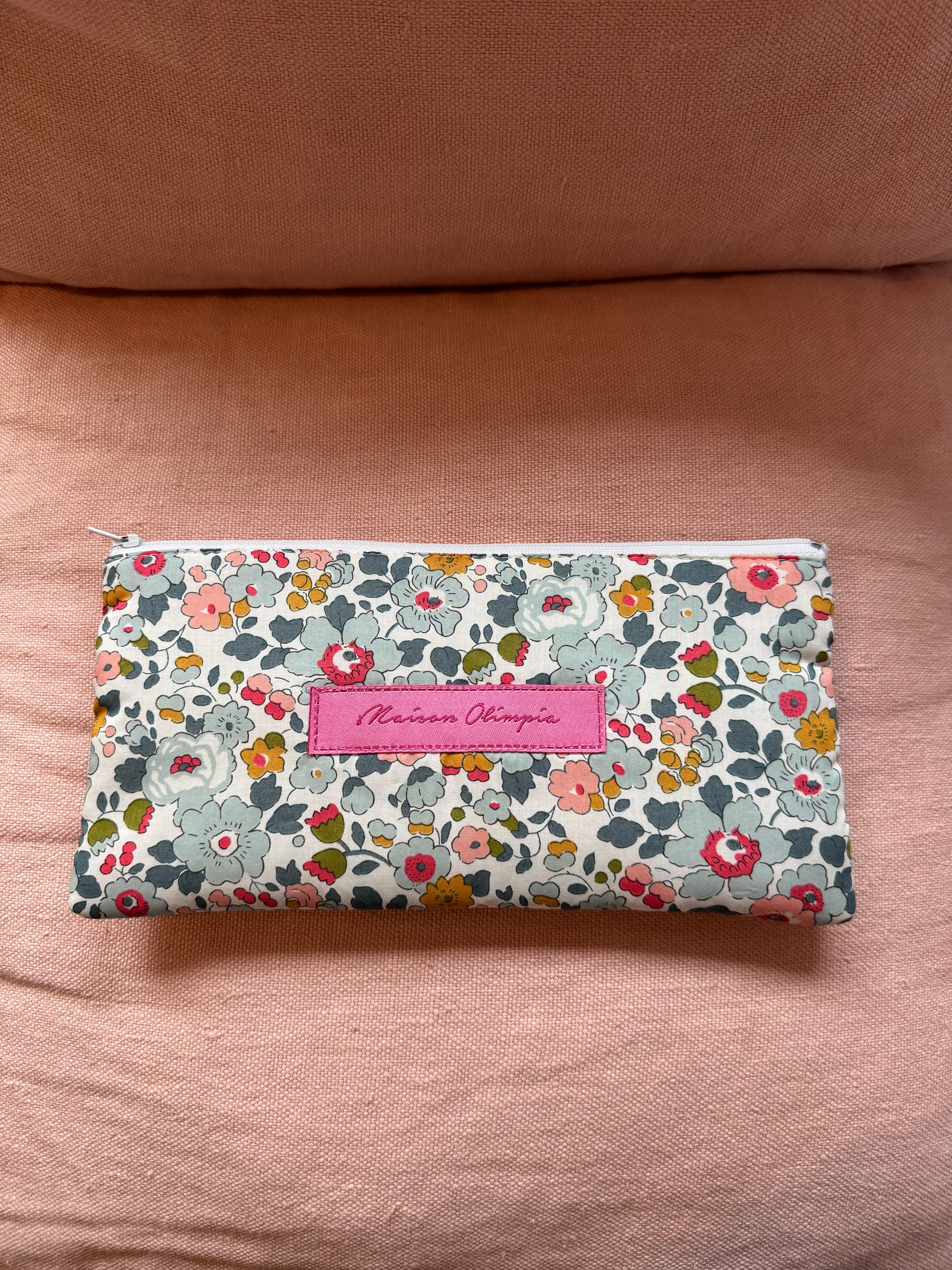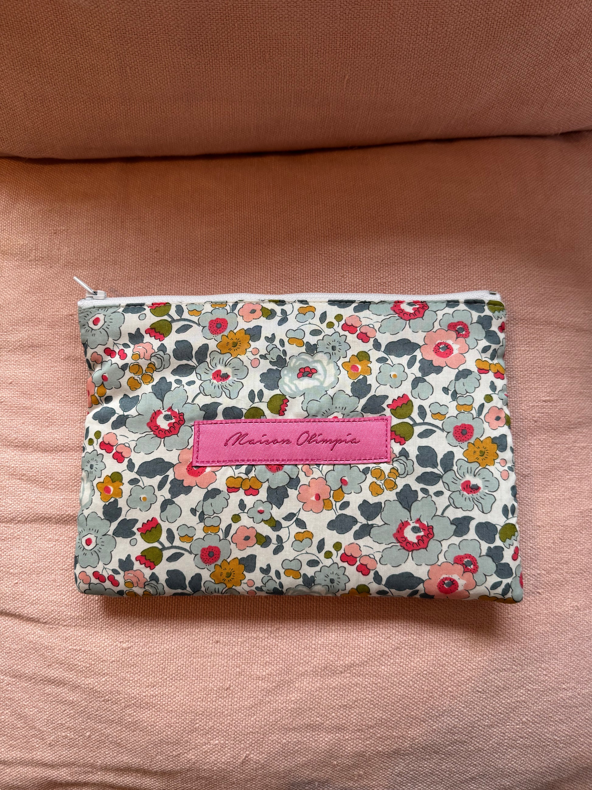 Elegante e funzionale, questa bustina piatta è realizzata in 100% cotone con una fantasia Liberty originale che dona un tocco raffinato e senza tempo. L'interno è morbidamente imbottito con cotone, ideale per proteggere piccoli oggetti come trucchi, accessori o articoli da viaggio. Perfetta da tenere in borsa o da regalare.