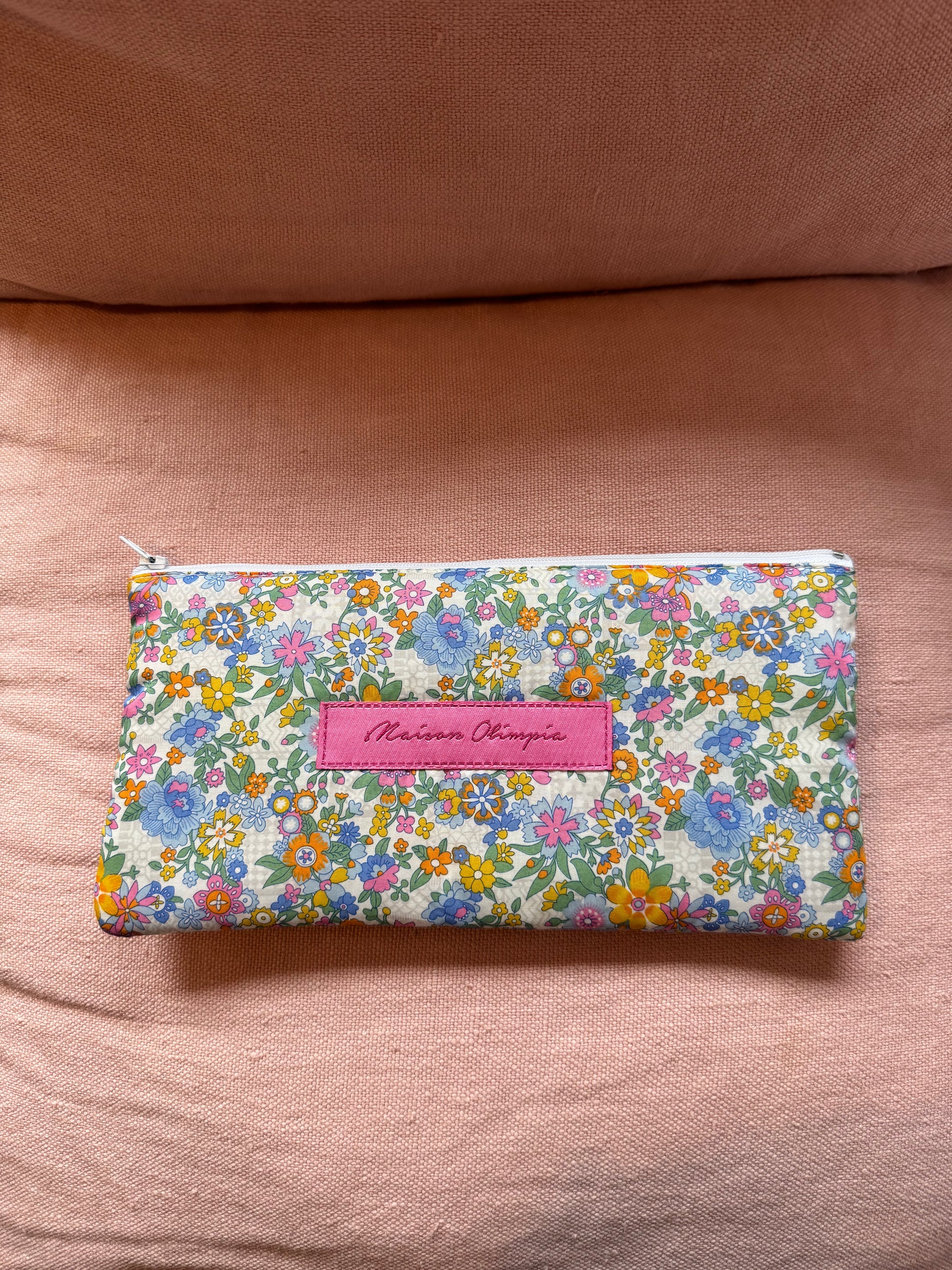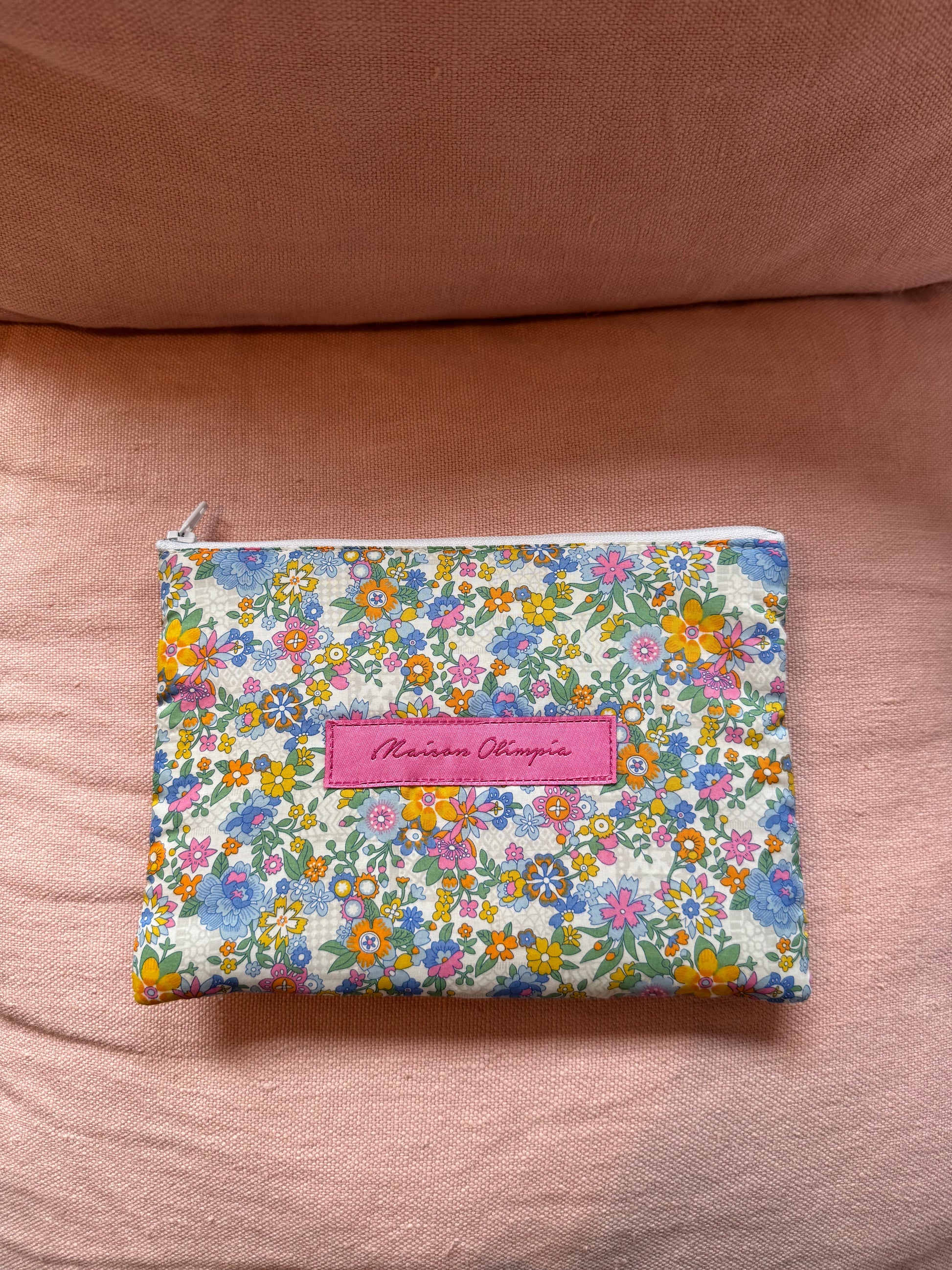 Elegante e funzionale, questa bustina piatta è realizzata in 100% cotone con una fantasia Liberty originale che dona un tocco raffinato e senza tempo. L'interno è morbidamente imbottito con cotone, ideale per proteggere piccoli oggetti come trucchi, accessori o articoli da viaggio. Perfetta da tenere in borsa o da regalare.