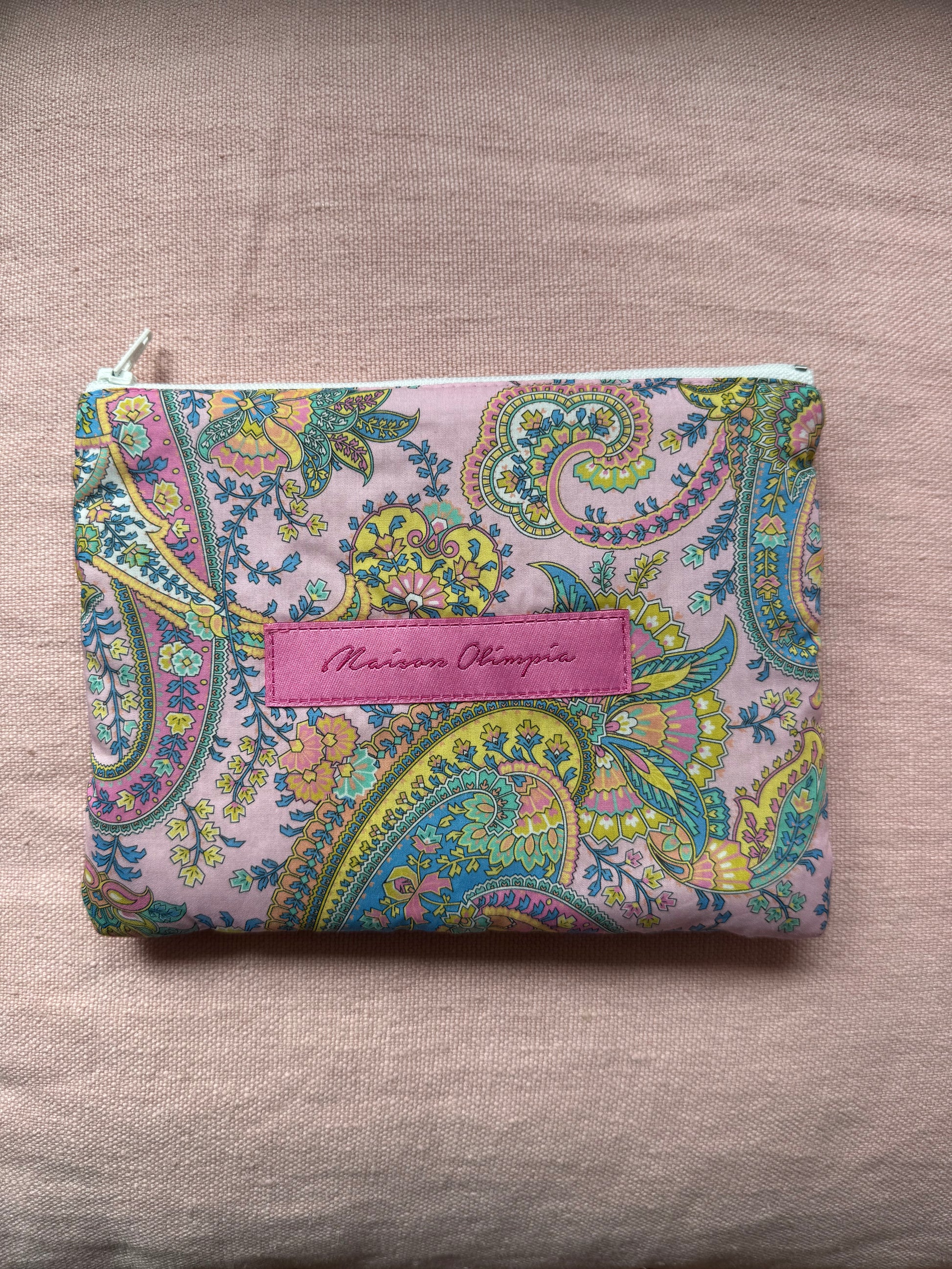 Elegante e funzionale, questa bustina piatta è realizzata in 100% cotone con una fantasia Liberty originale che dona un tocco raffinato e senza tempo. L'interno è morbidamente imbottito con cotone, ideale per proteggere piccoli oggetti come trucchi, accessori o articoli da viaggio. Perfetta da tenere in borsa o da regalare.