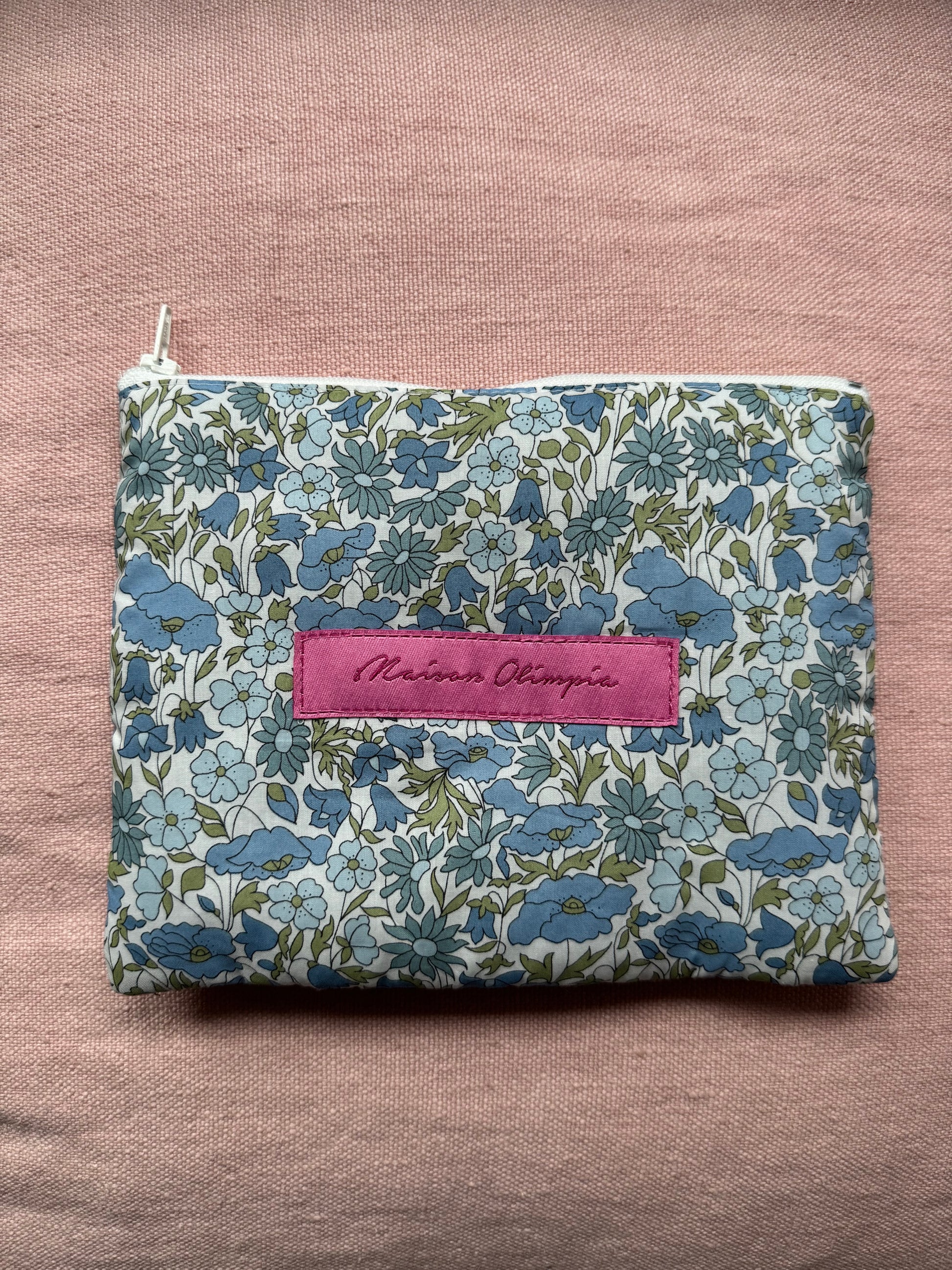 Elegante e funzionale, questa bustina piatta è realizzata in 100% cotone con una fantasia Liberty originale che dona un tocco raffinato e senza tempo. L'interno è morbidamente imbottito con cotone, ideale per proteggere piccoli oggetti come trucchi, accessori o articoli da viaggio. Perfetta da tenere in borsa o da regalare.