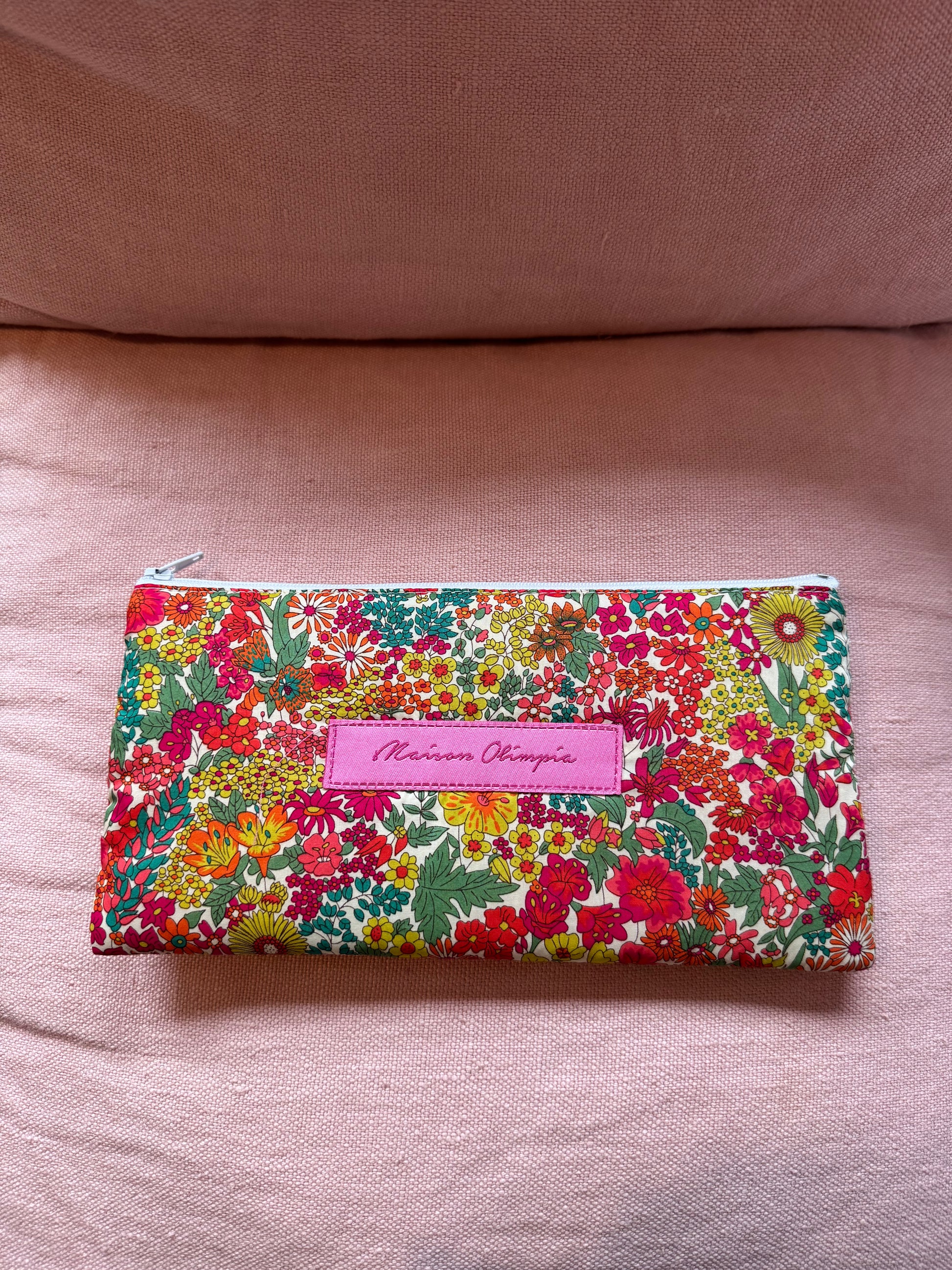 Elegante e funzionale, questa bustina piatta è realizzata in 100% cotone con una fantasia Liberty originale che dona un tocco raffinato e senza tempo. L'interno è morbidamente imbottito con cotone, ideale per proteggere piccoli oggetti come trucchi, accessori o articoli da viaggio. Perfetta da tenere in borsa o da regalare.
