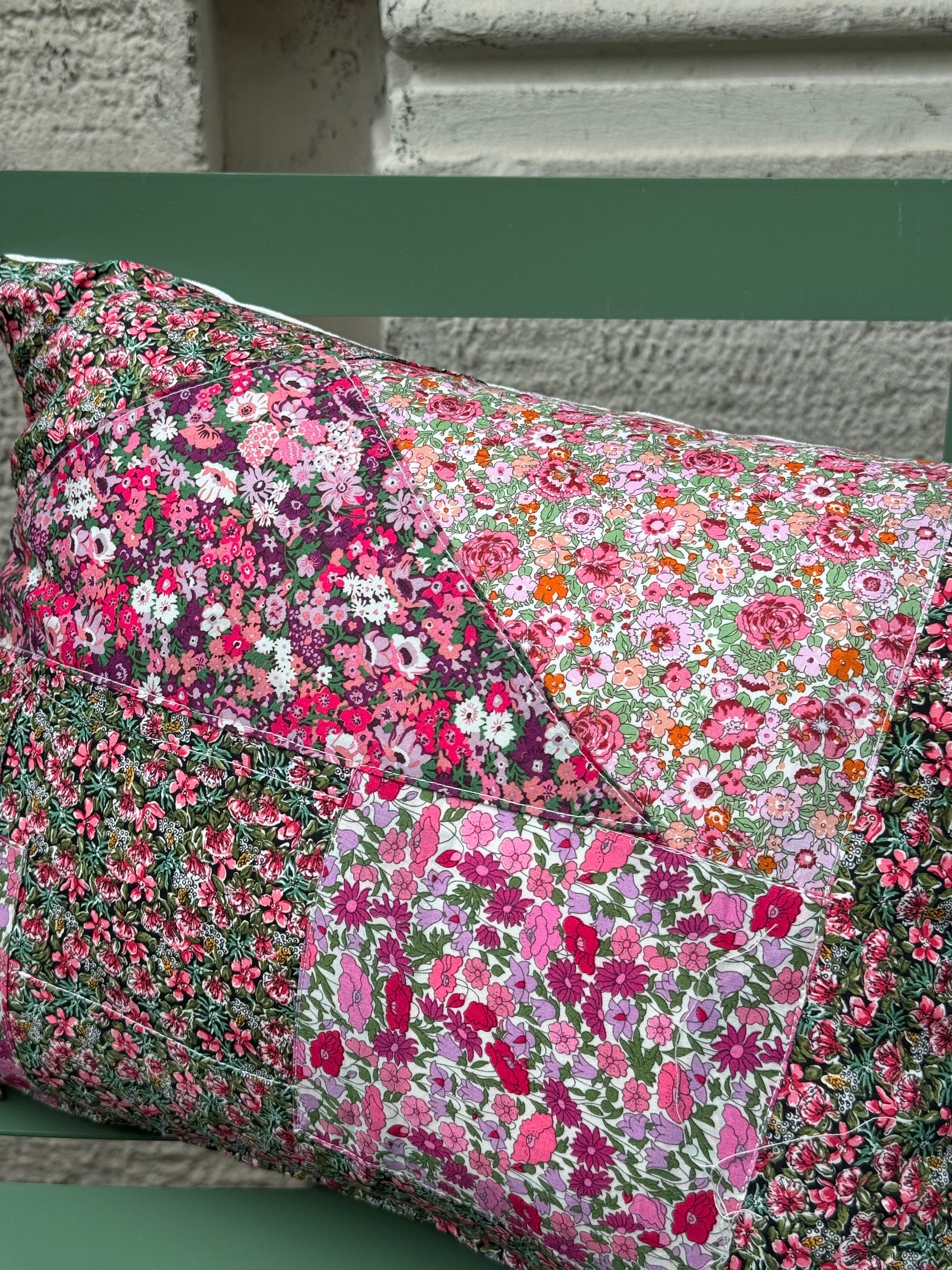 Rendi la tua casa ancora più colorata e accogliente con i nostri cuscini realizzati a mano in patchwork, utilizzando una selezione dei nostri tessuti Liberty. Ogni cuscino è un pezzo unico, creato abbinando fantasie e colori in modo originale e armonioso.